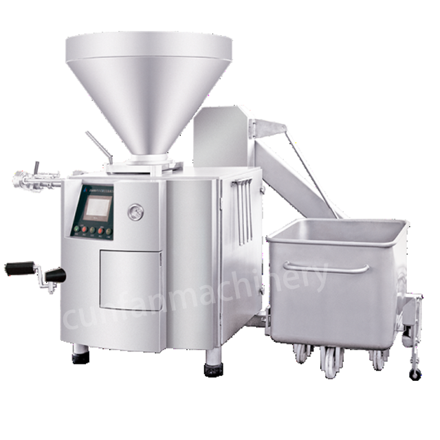 Optional devices include an automatic linking unit and a standard trolley lifter. The automaticlinking device is suitable for products using natural casings, protein casings, and smoked casings,with infinitely adjustable twisting speeds according to different products and raw materials. Thefiller can work independently or be connected with a clipping machine for continuous automatedproduction.