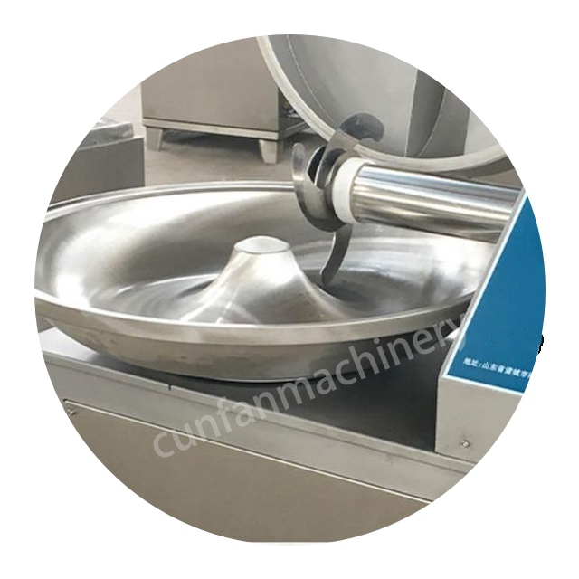 It is equipped with a high-umbilical rotary pot for loading materials and a complete set of high-speed rotating cutting knives, which can chop and mix larger non-frozen meat pieces,accessories, additives and other raw materials into meat fillings or meat paste with different particle sizes.